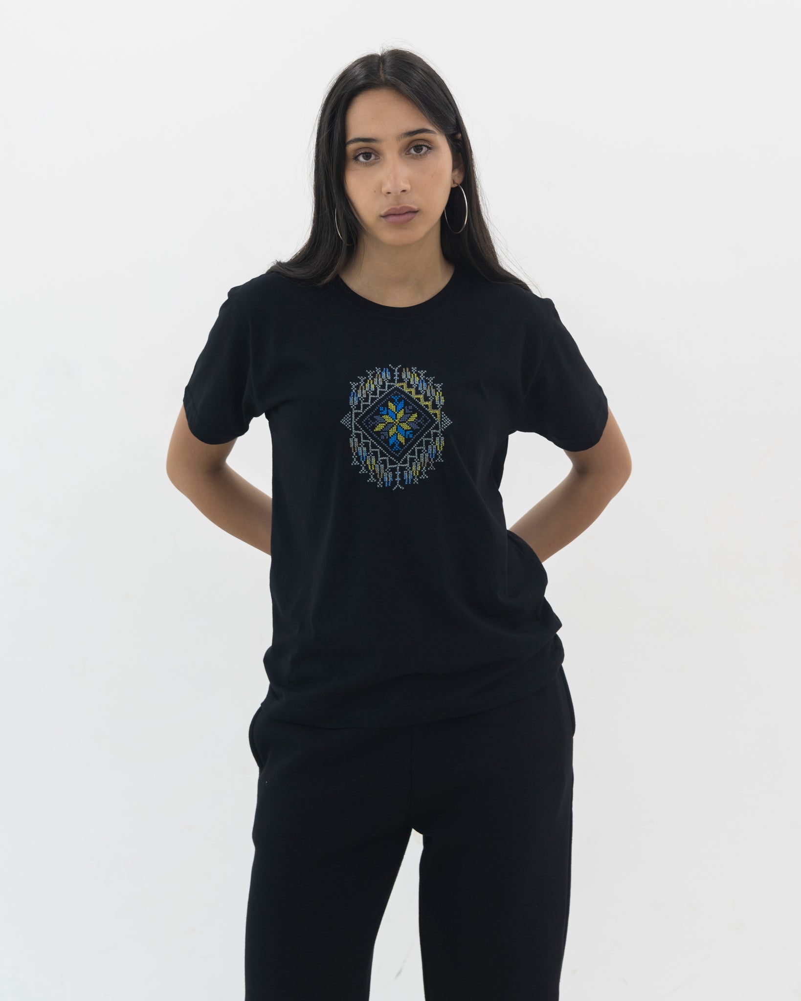 All our pieces are sewn in Jordan and hand-embroidered by Palestinian and Jordanian artisans living in refugee camps or marginalized communities.