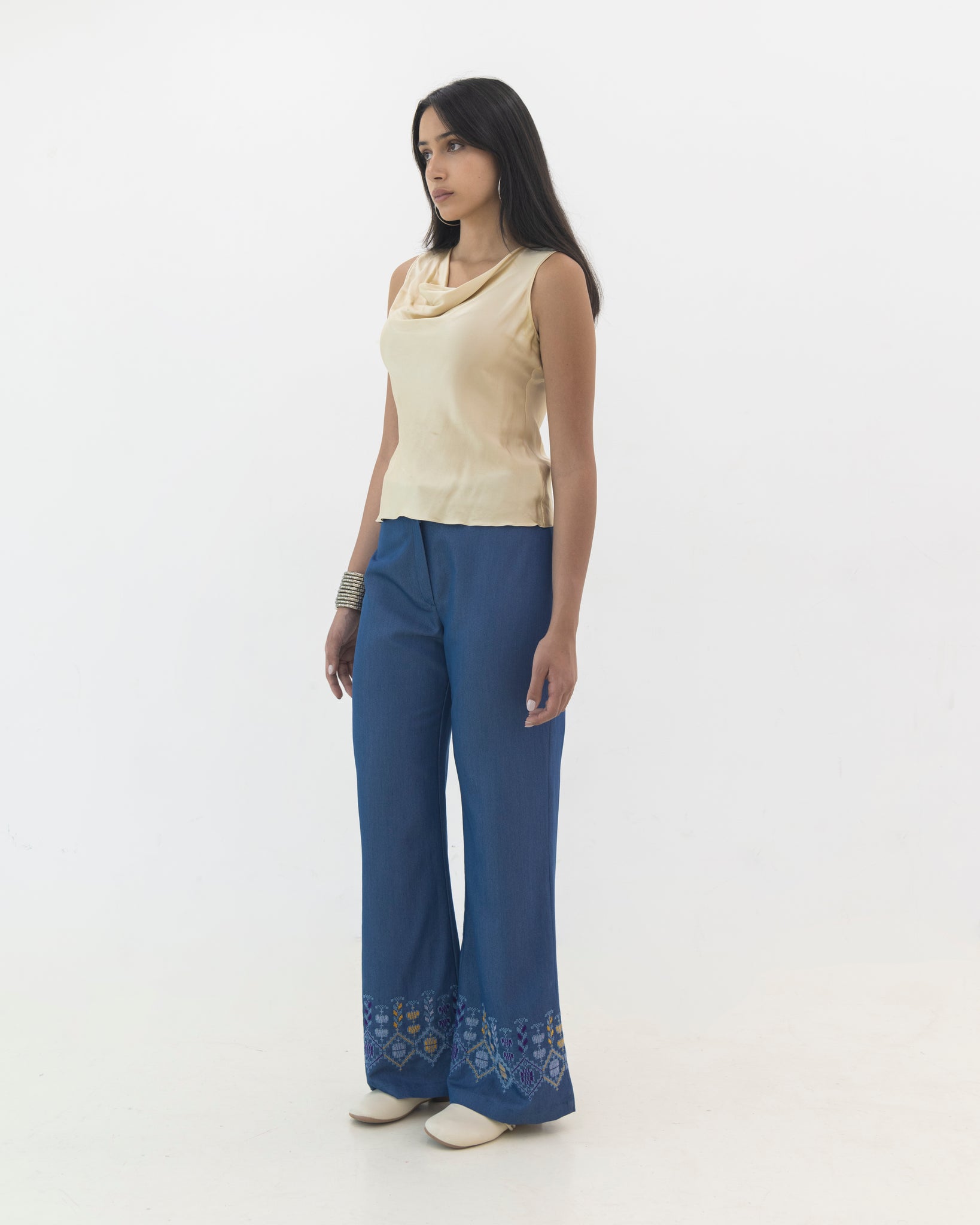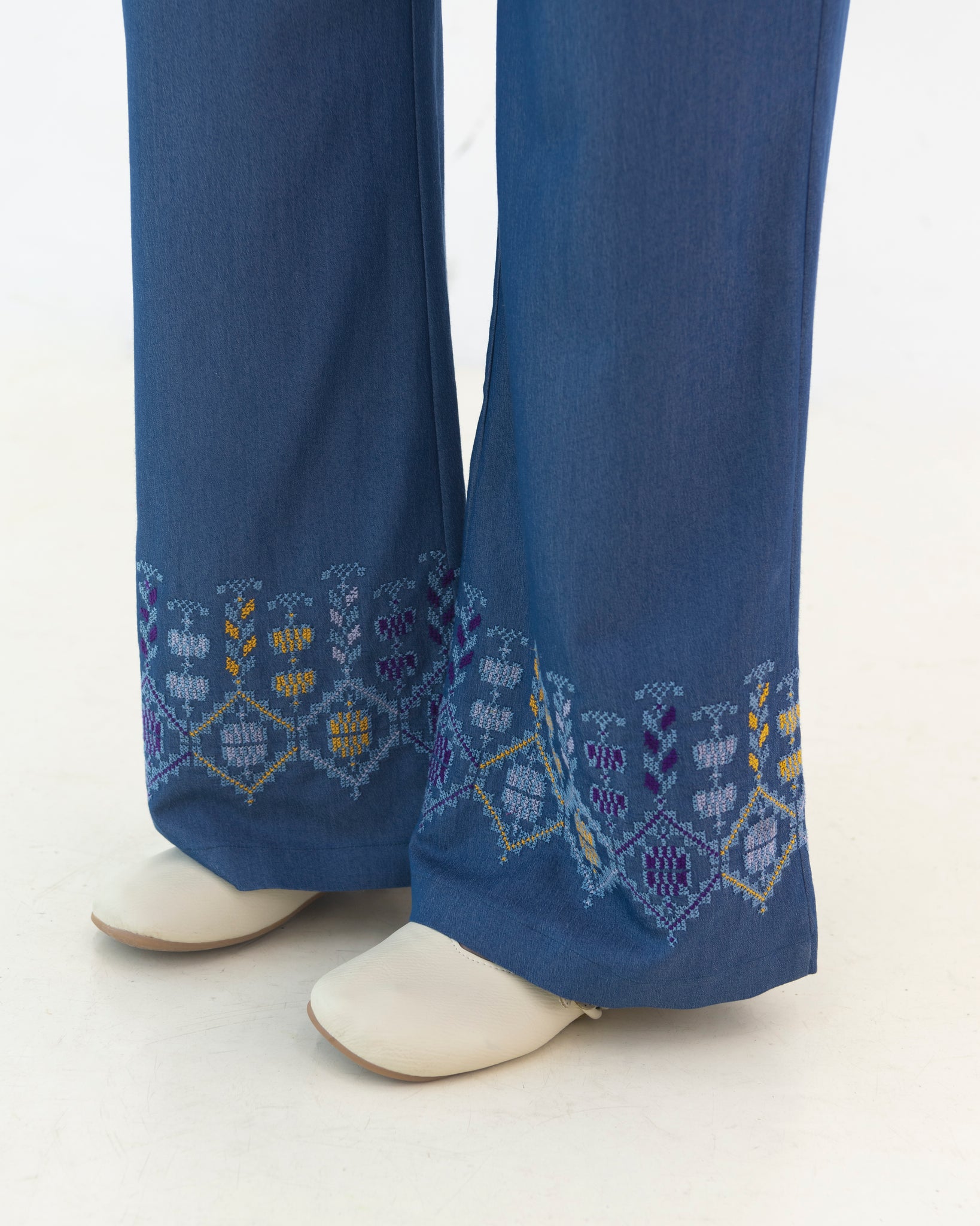 - Fit: Wide-leg. Relaxed fit. Finished with intricate embroidered detailing at the hem for a statement touch.